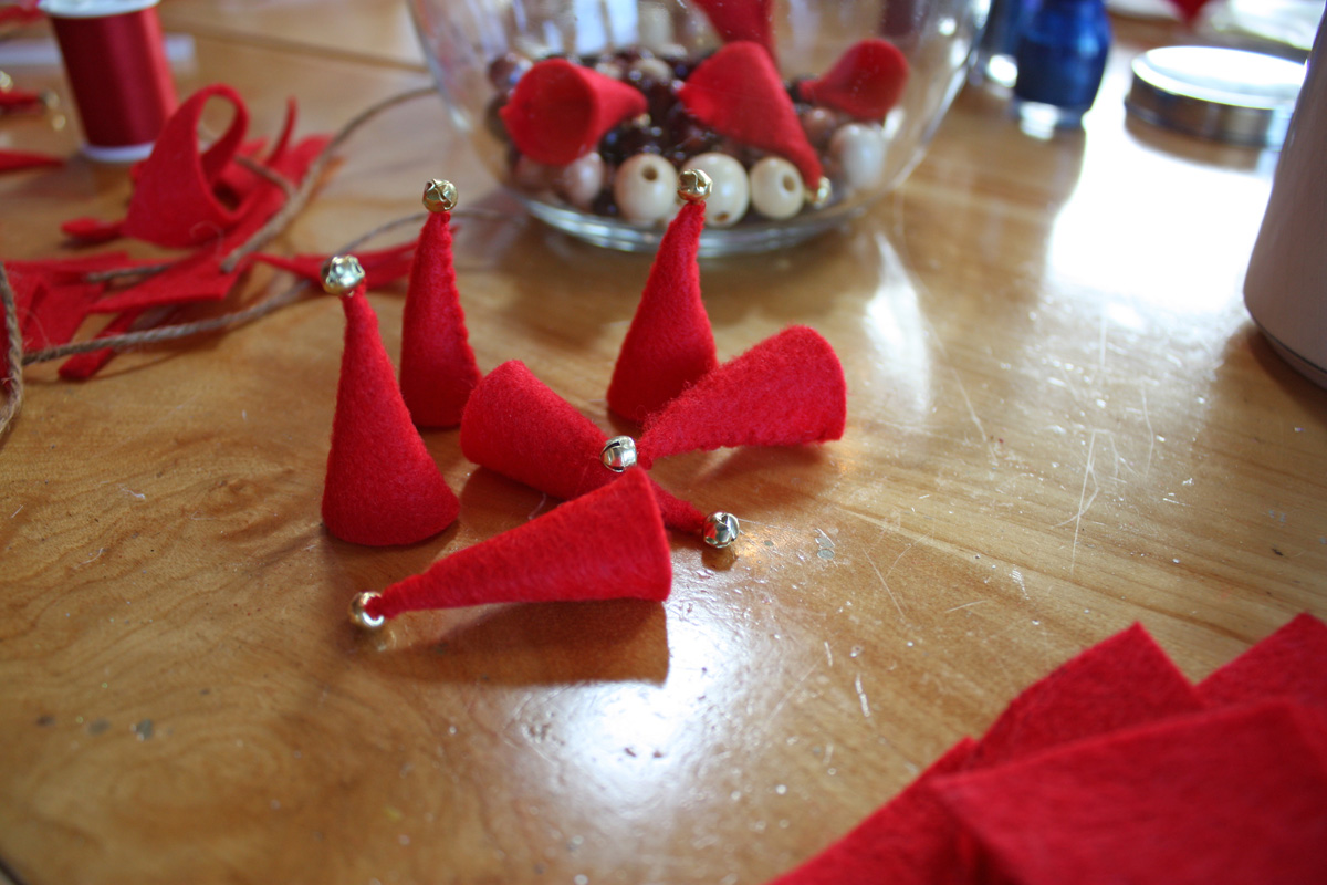 Sew tiny jingle bells to the tips to make teeny tiny hats.